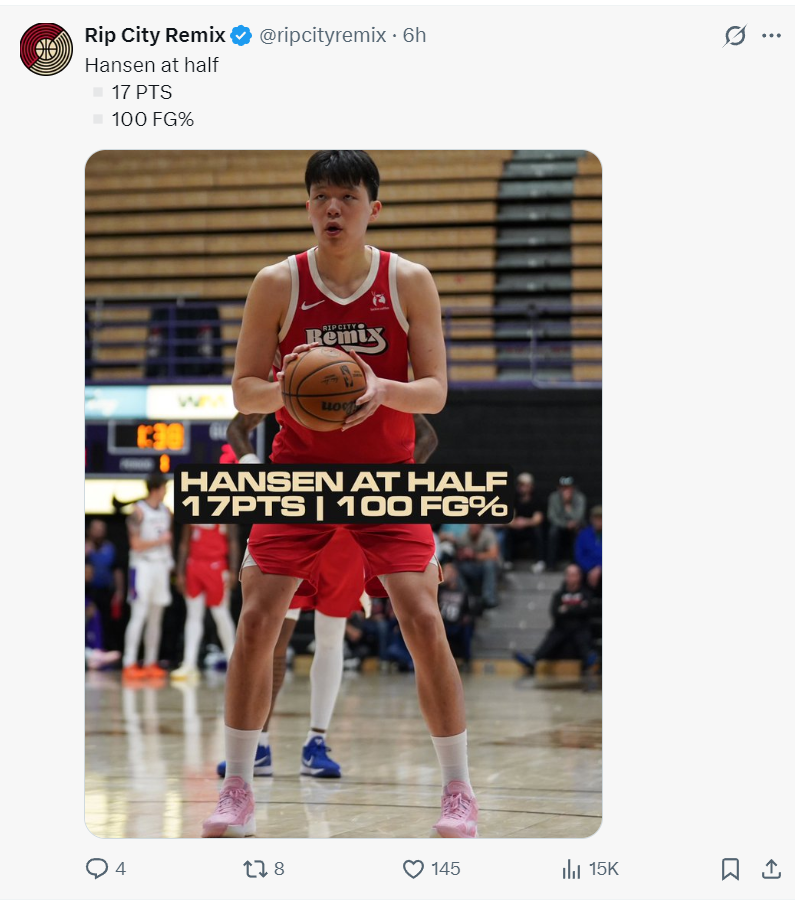 但有一位开拓者球迷写道:没用的,就算杨瀚森在G联赛拿到100分也没用,因为开拓者主帅斯普利特是一个低智商、愚蠢的主帅,他不会给杨瀚森机会的。